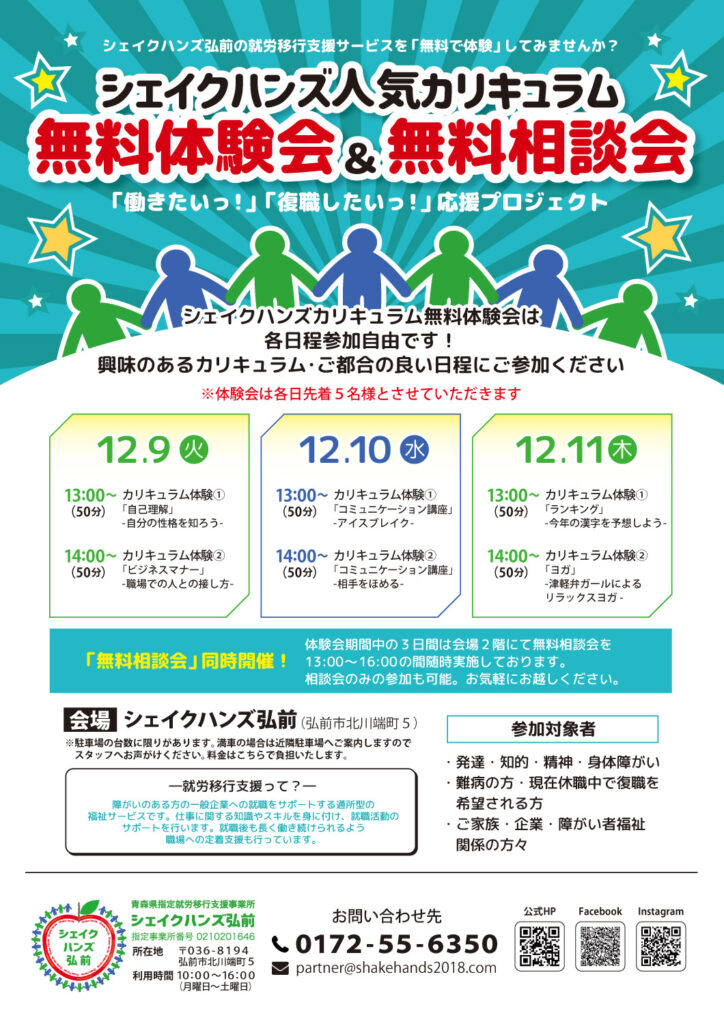 青森県指定就労移行支援事業所シェイクハンズ弘前スタッフによるブログです。
