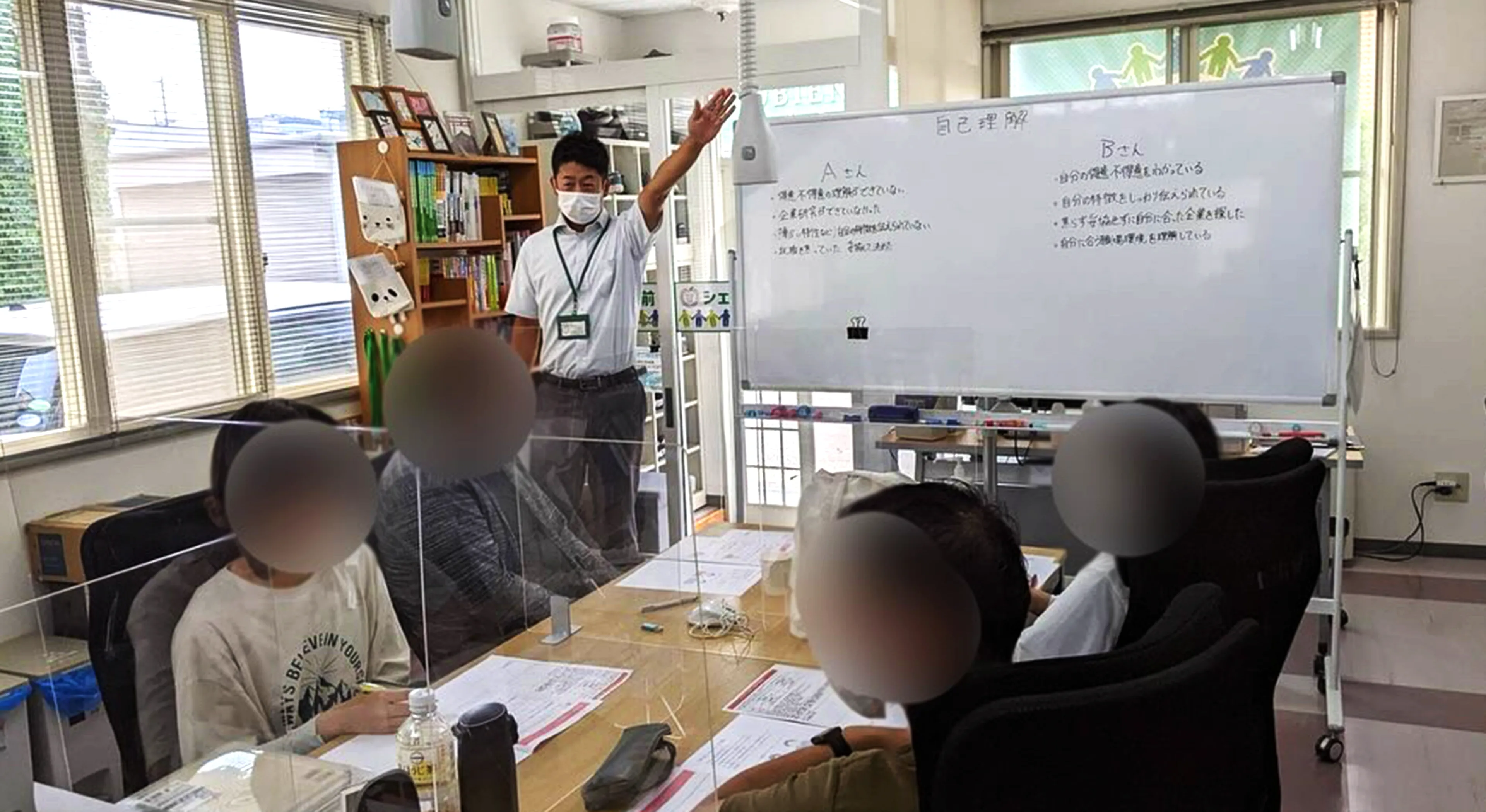 A. 障害のある方が一般企業へ就職した後に、職場で長く働き続けられるよう、定期的な面談や職場訪問などを通じて、相談・指導・助言などを行います。就労移行支援の場合は就職後、最低6ヶ月間は定着支援を実施します。シェイクハンズ弘前では6ヶ月経過後も必要に応じて支援を継続するケースもあります。